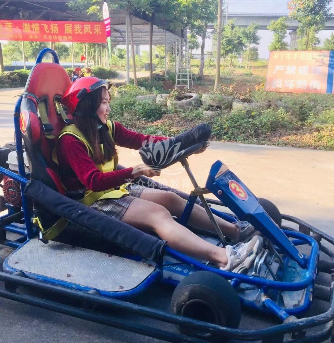 由于卡丁車結構簡捷、安全性高(gāo),初學(xué)者無需任何駕駛經驗即可(kě)參于,作為(wèi)拓展項目容易上手,這就給每個接觸它的(de)人都提供了躍躍欲試的(de)機(jī)會。 使車手在安全保障的(de)前提下,深刻體會到風馳電掣的(de)速度,潇灑飄逸的(de)感覺和(hé)人車合一(yī)的(de)駕控體會。